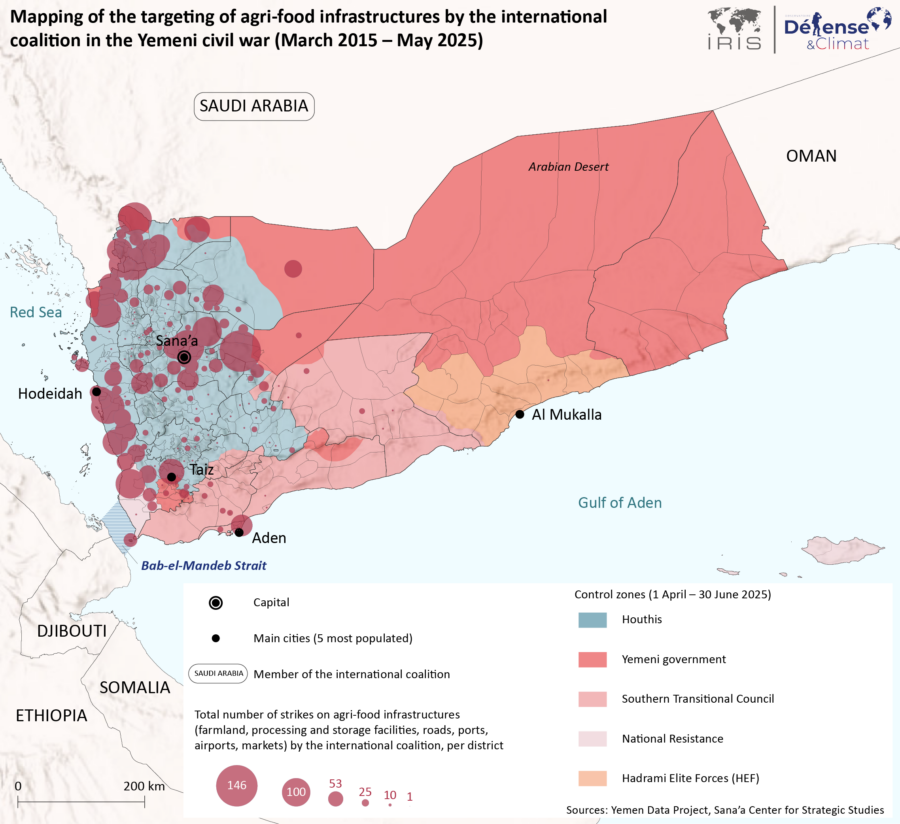 Map 2: Mapping of the targeting of agri-food infrastructures by the international coalition in the Yemeni civil war (March 2015 – May 2025)